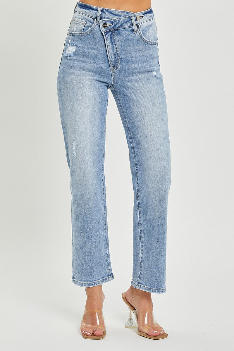 Risen Light Wash High Rise Crossover Tapered Jean